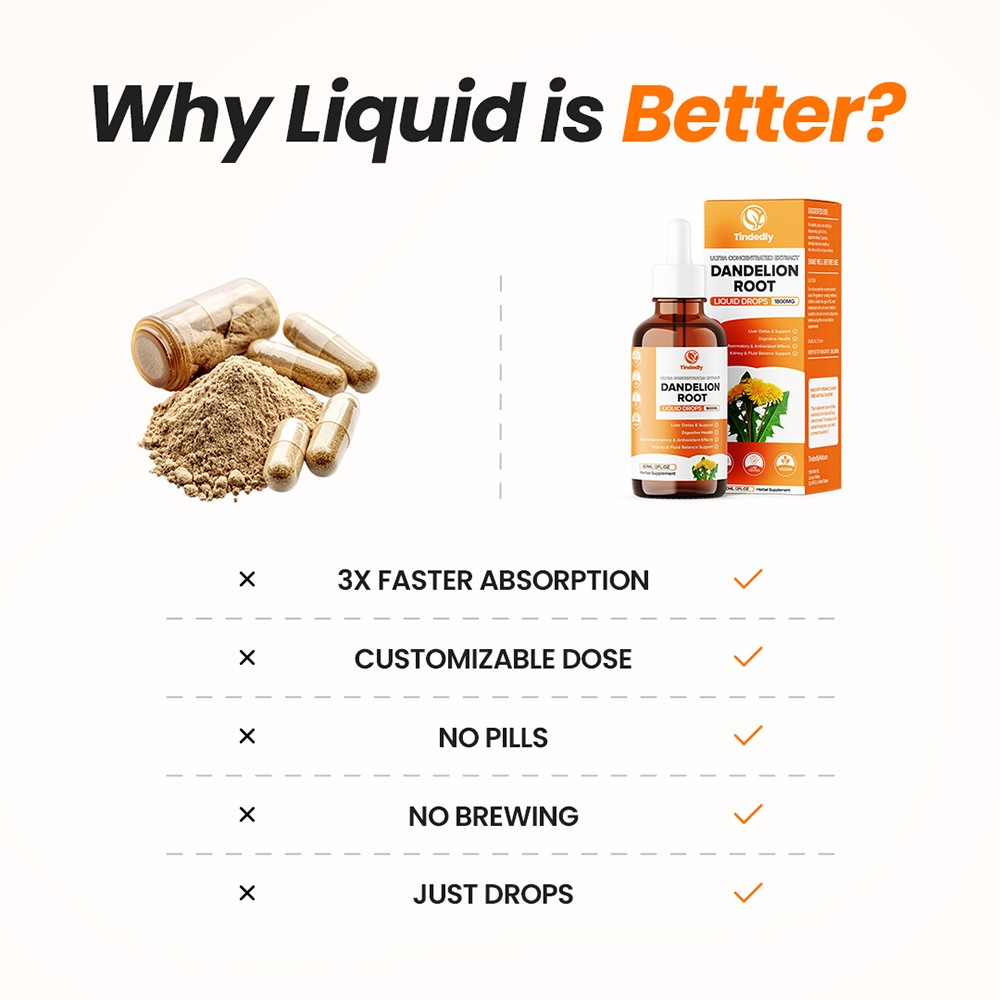 Our Pure Dandelion Root Extract is packaged in a convenient, easy-to-use liquid dropper bottle, designed for quick and precise dosing.